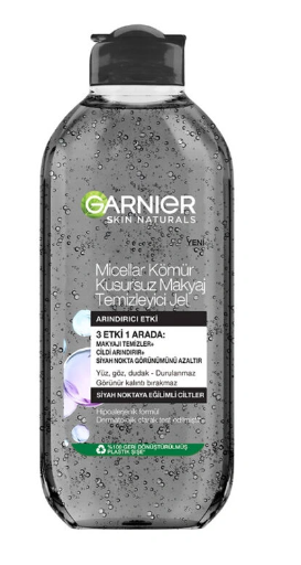 GARNİER MICELLAR KÖMÜR KUSURSUZ MAKAYJ TEMİZLEME JELİ İLE 3 ETKİ 1 ARADA! Nazik Micel tanecikleri içeren formülü yüz, göz ve dudaktan kir, yağ ve makyajı mıktanıs gibi çeker. Kömür ve salisilik asit içeren formülü ile cildi arındırmaya ve cilt kusurlarının görnümünü azaltmaya yardımcı olur.