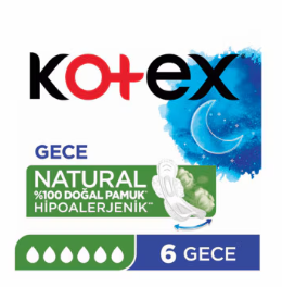 Kotex Natural Hijyenik Ped Ultra Single Gece 6 Adet, kadınları regl günlerinde rahat ettirmek amacıyla üretilen kişisel bir bakım ürünüdür. %100 doğal pamuktan elde edilen pedler uzun kanatları ve ekstra emici yüzeyi sayesinde geceleri deliksiz bir uyku çekmenizi sağlar.